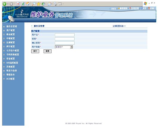 如果說(shuō)節(jié)省了幾臺(tái)服務(wù)器和CTI中間軟件的開(kāi)支對(duì)于用戶(hù)而言?xún)H僅是一個(gè)直觀的體驗(yàn),那么RT-CCP1000的維護(hù)和管理將對(duì)用戶(hù)產(chǎn)生長(zhǎng)久的影響,在維護(hù)和管理上仍然堅(jiān)持著一體化核心理念的RT-CCP1000平臺(tái),將用戶(hù)從多個(gè)廠(chǎng)家的設(shè)備互聯(lián)和維護(hù)中(程控交換機(jī)/CTI服務(wù)器/IVR服務(wù)器/錄音服務(wù)器)徹底的解放出來(lái)。RT-CCP1000基于WEB方式的全中文操作維護(hù)界面始終走在業(yè)界的最前沿。