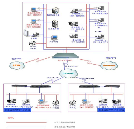 在北京石景山區(qū)政府68812345便民服務(wù)熱線(xiàn)項(xiàng)目中,RT-CCP1000內(nèi)置的SIP協(xié)議為區(qū)政府便民服務(wù)落到了實(shí)處。在此次項(xiàng)目中,區(qū)政府為各類(lèi)熱線(xiàn)問(wèn)題均設(shè)置了遠(yuǎn)端專(zhuān)家坐席,專(zhuān)家坐席通過(guò)IP電話(huà)和數(shù)據(jù)專(zhuān)網(wǎng)遠(yuǎn)程注冊(cè)到RT-CCP1000設(shè)備上,這樣當(dāng)本地普通坐席遇到緊急或重要問(wèn)題時(shí),可以將來(lái)電直接轉(zhuǎn)接給相關(guān)業(yè)務(wù)的遠(yuǎn)端專(zhuān)家坐席,以便得到及時(shí)有效的處理。