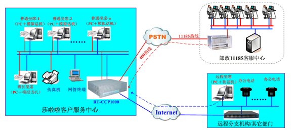 IP分布式特點:對于莎啦啦這樣一個企業(yè)級客戶而言,呼叫中心只是企業(yè)的一個部門,這個部門需要與企業(yè)的其他部門協(xié)同工作,才能最大限度的發(fā)揮呼叫中心的作用。這就要求莎啦啦所部署的呼叫中心系統(tǒng)具備極為便捷的擴(kuò)展能力,在需要其他部門響應(yīng)客戶服務(wù)時,能夠?qū)⑵渌块T的相關(guān)人員立即升級為更專業(yè)的二線坐席來協(xié)同處理。而傳統(tǒng)的呼叫中心系統(tǒng)中,在需要協(xié)同服務(wù)時,臨時部署二線坐席或者辦公電話,顯然是不可能的,而為其他部門設(shè)立專家坐席,對于資金有限的企業(yè)而言,其成本和收益往往又不成比例。那么基于IP的技術(shù)則可以非常輕松的解決這一矛盾。RT-CCP1000自帶的免費軟電話,能夠通過標(biāo)準(zhǔn)的SIP或者H.323協(xié)議和局域網(wǎng)使莎啦啦的任何專業(yè)人員可以立即加入到整個呼叫中心系統(tǒng)坐席組中。