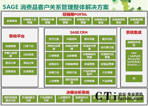 Sage CRM消費品行業(yè)解決方案提供經(jīng)銷商使用的PORTAL系統(tǒng)、移動系統(tǒng)、內(nèi)部運作系統(tǒng)及可以供我們經(jīng)營管理層使用的決策分析系統(tǒng),全面提高企業(yè)的快速反應力及競爭力,為消費品行業(yè)企業(yè)創(chuàng)造更大效益。