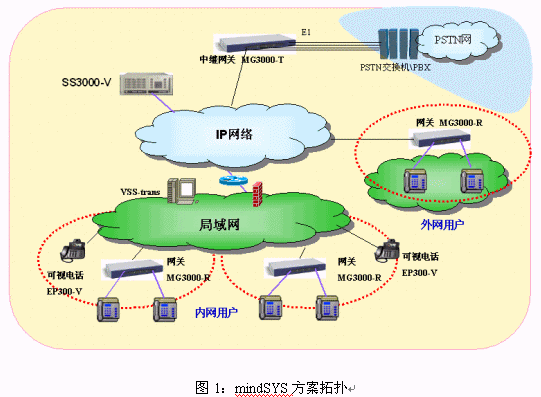 mindSYS方案通過數(shù)字中繼或者模擬中繼與電信運營商的程控交換機連接,無縫的接入PSTN網(wǎng)絡,使得VOIP與傳統(tǒng)的電話、手機隨時互通,網(wǎng)內網(wǎng)外同樣打電話,溝通世界的每一個角落。
