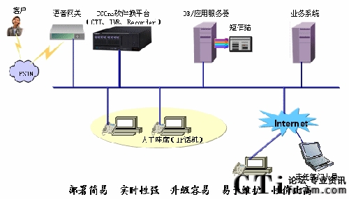 從產(chǎn)品上總結(jié),這四個階段,分別是人工熱線電話系統(tǒng),交互式語音自動應(yīng)答系統(tǒng)、兼有自動語音和人工服務(wù)的客戶系統(tǒng)、網(wǎng)絡(luò)多媒體客服系統(tǒng)。在前兩個階段,其實是圍繞著PBX(Private Branch Exchang)做文章的;隨后的第三階段,出現(xiàn)了所謂的CTI。在CTI階段,呼叫中心無論從業(yè)務(wù)功能、業(yè)務(wù)流程上都得到巨大的發(fā)展。而第四階段的網(wǎng)絡(luò)多媒體客服系統(tǒng),目前還在起步階段,處在發(fā)展之中。隨著“Everything Over IP”的發(fā)展,呼叫中心的這個發(fā)展趨勢也深深烙上了IP的痕跡。