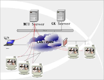 在企業(yè)內部局域網與INTERNET連接處,會設置FIREWALL防火墻,而IP語音視頻會議采用的ITU H.323協(xié)議本身不具備穿越防火墻的特性,因此需要防火墻穿越軟件。