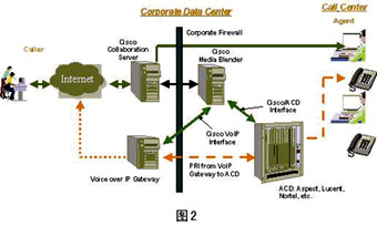 ----采用基于Internet的呼叫中心與電子商務(wù)網(wǎng)站相結(jié)合的體系結(jié)構(gòu),是實(shí)現(xiàn)競爭優(yōu)勢的重要手段。通過將呼叫中心與Internet集成為一體,可以提供自我?guī)椭、協(xié)同合作、基于技能的路由、集成回叫、電子郵件路由、自動(dòng)電子郵件響應(yīng)、集成工作流程管理、預(yù)設(shè)的工作流程、動(dòng)態(tài)內(nèi)容整合等諸多功能,從而實(shí)現(xiàn)網(wǎng)絡(luò)客戶互動(dòng)。Cisco客戶互動(dòng)套件(CCIS)正體現(xiàn)了這一思想。
