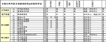上表為與全程全網(wǎng)考核策略目標(biāo)相匹配的驅(qū)動(dòng)因素指標(biāo)與結(jié)果指標(biāo)的列示。