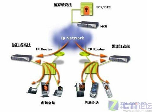 浙江省高等法院的應(yīng)用只是一個(gè)縮影,據(jù)了解,在全國法院系統(tǒng)在最高人民法院的示范作用下,各省級高等法院已經(jīng)紛紛應(yīng)用RADVISION視頻會(huì)議系統(tǒng),全面構(gòu)造省級法院到地(市)級法院的二級檢察院視頻會(huì)議網(wǎng)絡(luò)。目前全國已經(jīng)有22個(gè)省成功建造了省級法院RADVISION MCU視頻會(huì)議交互平臺,組成了由24臺RADVISION MCU實(shí)現(xiàn)的最高法院-22個(gè)省級法院-地(市)法院的三級視頻會(huì)議網(wǎng)絡(luò)。RADVISION建設(shè)的視頻會(huì)議系統(tǒng),既可以實(shí)現(xiàn)每個(gè)省單獨(dú)同時(shí)或分時(shí)靈活組建省—地(市)兩級視頻會(huì)議,也可以召開最高法院—22個(gè)省級法院—地(市)法院的3級視頻會(huì)議,并實(shí)現(xiàn)了最高法院對地(市)法院視頻會(huì)議終端的直接控制和管理。