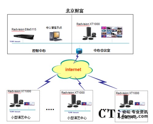 通過多次激烈的討論和無數(shù)次的論證,北京市財(cái)富中心領(lǐng)導(dǎo)最終決定通過打造一套高清視頻會議平臺系統(tǒng)來解決這一棘手的問題。財(cái)富中心的領(lǐng)導(dǎo)希望通過這套高清視頻會議平臺系統(tǒng)來提升全體員工的整體工作效率。該項(xiàng)目最終以RADVISION Elite MCU為多媒體通信平臺核心進(jìn)行搭建,前期以多媒體會議室及演藝中心為主要接入點(diǎn),通過RADVISION SCOPIA XT1000高清會議室終端來實(shí)現(xiàn)高清1080P的視音頻交互;同時(shí),希望在后期的建設(shè)中,能夠通過固定電話、移動電話以及3G網(wǎng)絡(luò)的接入,來實(shí)現(xiàn)真正的多媒體統(tǒng)一通信。