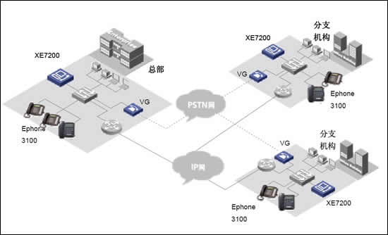 華為三康的XE7000IP語音解決方案是為企業(yè)提供融合的通信解決方案,在同一網(wǎng)絡(luò)上融合語音、數(shù)據(jù)和視頻信息,以滿足其日益增長(zhǎng)的企業(yè)通信的要求從而解決了現(xiàn)代企業(yè)面對(duì)的傳統(tǒng)PBX語音服務(wù)和IP網(wǎng)絡(luò)數(shù)據(jù)服務(wù)分離問題。華為三康的XE7000IP語音解決方案構(gòu)建在企業(yè)現(xiàn)有IP數(shù)據(jù)網(wǎng)絡(luò)之上,以集中式管理方式提供企業(yè)全網(wǎng)范圍內(nèi)的呼叫控制以及管理,業(yè)務(wù)控制和信令分離使得用戶在管理上更加簡(jiǎn)單透明,極大的節(jié)省了日常維護(hù)費(fèi)用和降低了維護(hù)難度。并使得客戶可以在任意地方實(shí)現(xiàn)IP語音數(shù)據(jù)接入,使得企業(yè)分布式辦公的不再因?yàn)槲锢砜臻g隔離而無法實(shí)現(xiàn)。