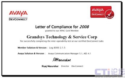 2008年7月 —Grandsys(宏盛高新技術(shù)有限公司)宣布其自創(chuàng)品牌[Grandsys LOG8000 錄音與質(zhì)檢解決方案]正式通過AVAYA DevConnect 的認(rèn)證。Grandsys正是全球?yàn)閿?shù)不多的已經(jīng)通過該項(xiàng)認(rèn)證的AVAYA 合作伙伴之一,包含知名廠家Nice及Verint等,這代表Grandsys的技術(shù)已達(dá)到國際知名廠家的水平, 國內(nèi)客戶也因此有機(jī)會(huì)享受到最優(yōu)質(zhì)的產(chǎn)品及服務(wù)。