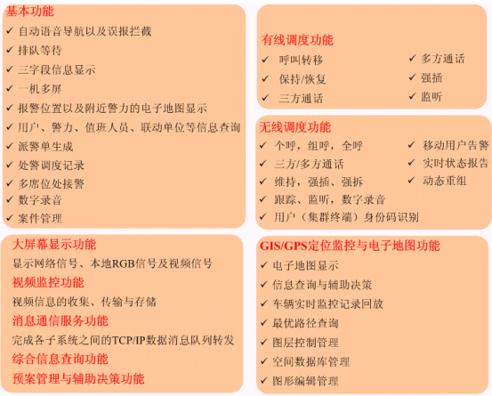 集中管理控制、分級處理、多業(yè)務處理功能;信息靈敏、資源共享、指揮有力、規(guī)范有序。