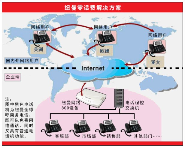 電話通訊技術發(fā)明以來最震撼的革命——零話費解決方案由紐曼開始,該方案由紐曼全球呼智能商務電話和網(wǎng)絡800組成,操作簡單、音質清晰,通話雙方用普通電話機實現(xiàn)免費通話。