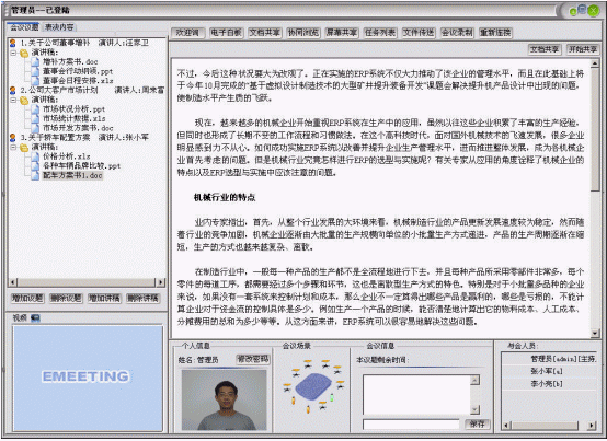 5、小何在分析機(jī)械行業(yè)的稅收情況,報告內(nèi)容被同步共享到與會者的終端上,系統(tǒng)的數(shù)據(jù)文檔共享功能實(shí)現(xiàn)了無紙交流的夢想;
