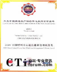 客戶聯(lián)絡(luò)中心標(biāo)準委員會層層評估和共同審定,上海寶東(DataTool)及VERINT雙雙獲得“2009中國呼叫中心排班管理軟件獎”,這一大獎的頒發(fā)是ICMI對寶東及VERINT的肯定與支持,代表著權(quán)威機構(gòu)對VERINT的WFM排班管理軟件在呼叫中心行業(yè)中的貢獻及對寶東公司技術(shù)服務(wù)能力的認可及肯定。
