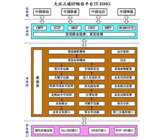 ;國際通用協(xié)議 SMPP 3.4 、 SMPP 3.4 ,每個協(xié)議實行模塊化,開發(fā)成對應的動態(tài)鏈接庫,并提供統(tǒng)一的接口。