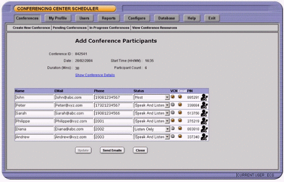 作為電話會議的補充,會議主席可以建立基于web的應(yīng)用。通過這樣的web接口,會議主席和與會人員不僅看到與會人員的狀態(tài),還可以設(shè)置聽眾只聽,聽和說,可以看到web界面的權(quán)限。web