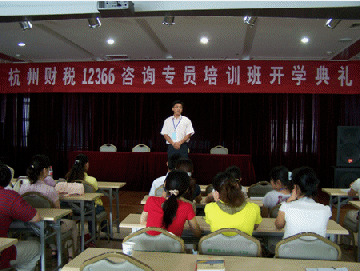 圖為杭州財(cái)稅12366咨詢專員培訓(xùn)班開學(xué)典禮上杭州財(cái)稅局人事處領(lǐng)導(dǎo)講話