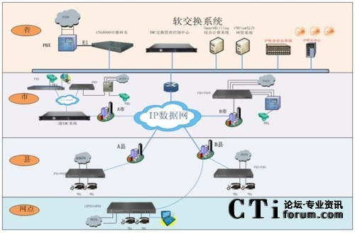 IP電話系統(tǒng)項(xiàng)目方案設(shè)計(jì)共分省、地州市、縣(市)三級(jí)進(jìn)行部署,按照省集團(tuán)至地州市分集團(tuán)、縣(市)級(jí)分集團(tuán)及營業(yè)廳建設(shè),全網(wǎng)通過部署相應(yīng)的IP電話設(shè)備(含語音軟交換、接入網(wǎng)關(guān)、PC軟電話、網(wǎng)管軟件、計(jì)費(fèi)軟件等),組建全省IP電話系統(tǒng)。