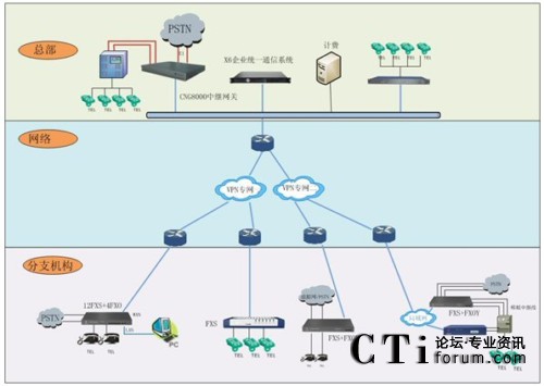 位于不同VPN網(wǎng)絡(luò)的分支機(jī)構(gòu)統(tǒng)一接入X6系統(tǒng)進(jìn)行交換轉(zhuǎn)發(fā)。