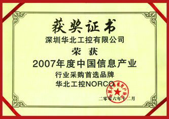 2007年1月16日,由中國(guó)計(jì)算機(jī)用戶(hù)協(xié)會(huì)(簡(jiǎn)稱(chēng)CCUA)主辦的“中國(guó)計(jì)算機(jī)用戶(hù)協(xié)會(huì)2006年度企業(yè)及產(chǎn)品推介頒獎(jiǎng)大會(huì)” 在北京世紀(jì)金源大飯店隆重召開(kāi),通過(guò)對(duì)中國(guó)境內(nèi)從事IT產(chǎn)品生產(chǎn)、銷(xiāo)售、集成和服務(wù)企業(yè)的經(jīng)營(yíng)規(guī)模、服務(wù)能力、產(chǎn)品使用效果、企業(yè)誠(chéng)信和持續(xù)發(fā)展能力等多項(xiàng)指標(biāo)進(jìn)行綜合評(píng)定,揭曉了中國(guó)信息產(chǎn)業(yè)2006年度優(yōu)秀企業(yè)評(píng)選與產(chǎn)品推介活動(dòng)結(jié)果。華北工控憑借其在業(yè)內(nèi)深入人心的影響,再次獲得“2006年度中國(guó)信息產(chǎn)業(yè)誠(chéng)信企業(yè)獎(jiǎng)”和“2007年度中國(guó)信息產(chǎn)業(yè)行業(yè)采購(gòu)首選品牌”。