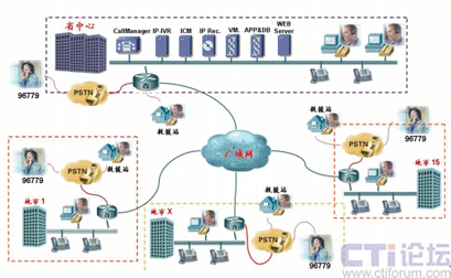 如上圖所示,由于Cisco IPCC是基于標準IP網絡的純IP呼叫中心解決方案,呼叫中心的核心設備都只部署在省中心機房,其它地市只需要在原有網絡的路由器上添加語音模塊即可實現PSTN語音的本地接入,而無需再各地市購買額外的接入設備。而同樣由于IP網絡的特性,呼叫中心的坐席可以根據需要部署在甘肅省運輸管理局IP網絡可達的任何一個地方,各地市的坐席只需要配備IP電話和座席PC即可。來自PSTN的電話根據用戶在IVR中的選擇和其它路由策略,自動分配到最適合的坐席處理,譬如來自白銀的運政投訴由白銀市本地的運政大廳座席人員處理。