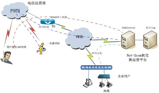 軟交換實現(xiàn)400號碼IP運(yùn)營圖