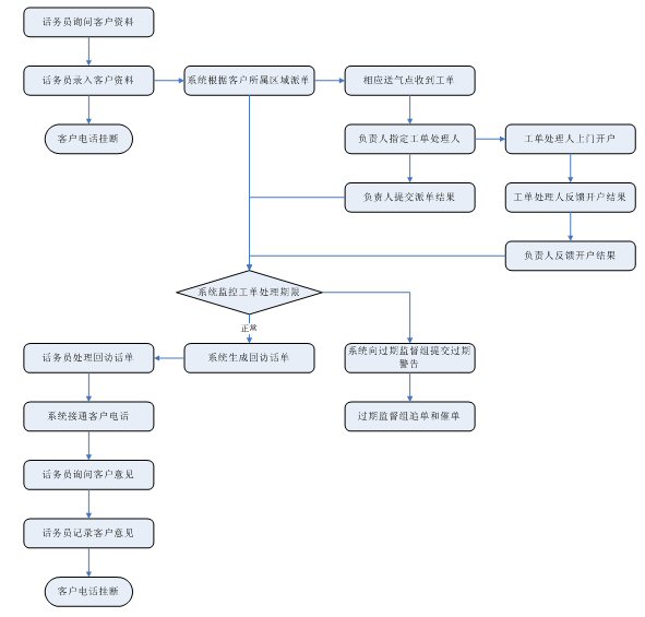 處理狀態(tài)查詢:用戶可以通過人工、自動語音、短信、傳真、Email、web等方式以受理號、用戶編號等關(guān)鍵字段查詢有關(guān)受理的處理情況和處理狀態(tài)。對用戶的查詢和催告均應(yīng)有詳細(xì)記錄。