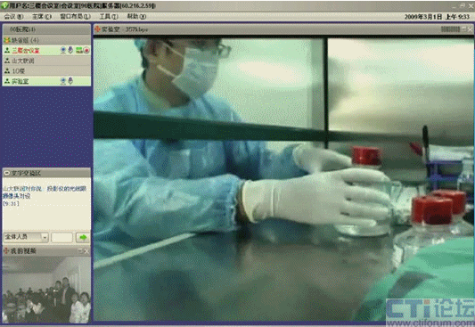 聽完眾多專家的精彩介紹后,與會(huì)人員希望能夠看到干細(xì)胞移植治療的臨床應(yīng)用現(xiàn)場(chǎng)演示。而干細(xì)胞移植過程是在專門的實(shí)驗(yàn)室里面進(jìn)行,一是實(shí)驗(yàn)室的面積比較小,容納不了這么多人員參加,另外實(shí)驗(yàn)室環(huán)境要求非常嚴(yán)格。如何把實(shí)驗(yàn)室里面的現(xiàn)場(chǎng)演示展示給眾多與會(huì)人員,這令會(huì)議的組織者非常頭疼。山大聯(lián)潤了解到濟(jì)南軍區(qū)總醫(yī)院遇到的困難后,派專門的技術(shù)人員與實(shí)驗(yàn)室充分交流,為他們提供了一個(gè)很好的可實(shí)施方案。在實(shí)驗(yàn)室安裝了一個(gè)可遙控的攝像頭,通過視維視頻會(huì)議遠(yuǎn)程遙控觀看實(shí)驗(yàn)室現(xiàn)場(chǎng)。在實(shí)驗(yàn)室里面的江主任與他同事一邊做實(shí)驗(yàn),一邊與場(chǎng)外的人員溝通交流。