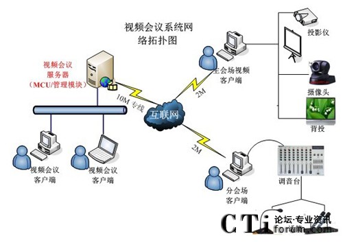 根據(jù)河南送變電建設公司的網(wǎng)絡現(xiàn)狀和現(xiàn)有的IT硬件資源以及各級各部門間的溝通協(xié)作需要,視維設計了一套可行的視頻會議系統(tǒng)解決方案,其網(wǎng)絡拓撲圖如下: