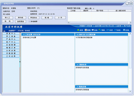 多種排隊機制,所有來電排隊信息都有顯示,提供對來電上移、下移、移到最前或轉自動臺處理等多種可選擇的排隊功能,來電可根據(jù)服務要求,選擇不同的服務部門及人員,系統(tǒng)都做了優(yōu)化處理