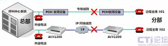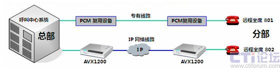 傲威通信采用AVX1200作為中心端和遠(yuǎn)程坐席端的復(fù)接設(shè)備,采用Hotline形式,只要遠(yuǎn)程坐席員摘機(jī),中心端的呼叫中心交換機(jī)立刻接到摘機(jī)指令。當(dāng)有呼叫到來,遠(yuǎn)程坐席可像本地坐席一樣接聽電話,無任何差異。