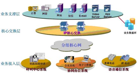 業(yè)務(wù)支撐層:計(jì)費(fèi)、網(wǎng)管、多媒體視頻、應(yīng)用服務(wù)器等各種功能服務(wù)器?膳c用戶的業(yè)務(wù)數(shù)據(jù)庫(kù)對(duì)接,為整個(gè)業(yè)務(wù)提供有力的支撐平臺(tái)。確保有效快速的處理呼叫流程、提高工作效率,評(píng)估呼叫中心的表現(xiàn)。