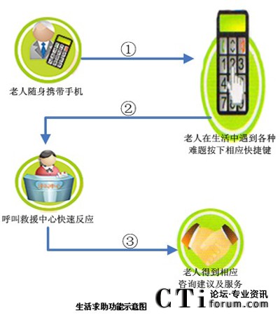 老人使用不記任何電話號(hào),按下紅鍵(盲人按粗糙鍵)就可發(fā)送緊急求救信號(hào);按下綠鍵可以發(fā)送求助信號(hào),求助信息根據(jù)用戶(hù)需要在同一時(shí)間發(fā)送到信息服務(wù)中心、社區(qū)網(wǎng)格管理員、老人指定親屬、物業(yè)公司、及有關(guān)部門(mén),可實(shí)現(xiàn)完整信息獲取和快速響應(yīng),啟動(dòng)多方通話進(jìn)行緊急調(diào)度,保障老人的生命財(cái)產(chǎn)安全。