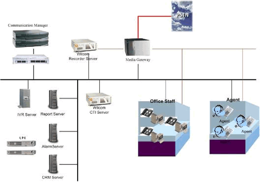 WILCOM CTI系統(tǒng)將CTI主流應(yīng)用帶進(jìn)了專業(yè)的呼叫中心。使得通過普通PC即可以完成自動撥號、會議電話等電話功能 ,并且與數(shù)據(jù)存儲主機(jī)及其客戶機(jī)相配合,提供消息管理。座席代表能夠迅速地用電腦處理呼叫并且使用應(yīng)用程序進(jìn)行自動撥號。系統(tǒng)還可以利用主叫信息以及呼叫提示位進(jìn)行實(shí)時(shí)的檢索和操作并將數(shù)據(jù)顯示給坐席電腦。系統(tǒng)還可以根據(jù)一定條件的計(jì)劃安排(如市場調(diào)查、客戶要求的回叫等),進(jìn)行呼出管理,完成預(yù)覽或預(yù)測呼出,以提高服務(wù)的效率和水平。 高可靠的CTI雙機(jī)熱備方案