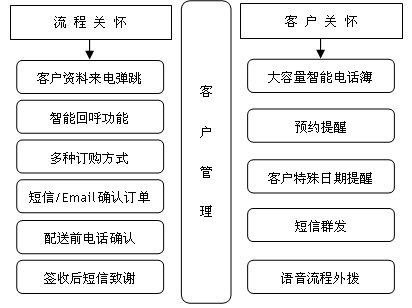 可與企業(yè)既有的800或400電話相結(jié)合,包含1至16個客服人員坐席設(shè)置,主要處理實時的產(chǎn)品售前售后咨詢、電話訂單受理等呼入類業(yè)務(wù),也能滿足以外撥為主的客戶關(guān)懷需求;同時,客服人員能夠通過系統(tǒng)隨時了解各種商品庫存情況,以便對網(wǎng)上交易提供及時有效的服務(wù)。來電彈跳客戶資料中必須顯示出客戶的歷史消費詳細信息,以及正在進行中的交易詳情。