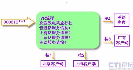 通訊平臺(tái)中設(shè)置語(yǔ)音菜單選項(xiàng),為呼入系統(tǒng)的客戶(hù)提供操作引導(dǎo)和自動(dòng)語(yǔ)音咨詢(xún)服務(wù)?蛻(hù)用電話(huà)撥入中心后,通過(guò)不斷地在話(huà)機(jī)上按鍵與計(jì)算機(jī)進(jìn)行交互應(yīng)答,計(jì)算機(jī)收到按鍵便播放相關(guān)語(yǔ)音。用此技術(shù)可為客戶(hù)提供7×24小時(shí)不間斷的多功能自動(dòng)語(yǔ)音服務(wù)。