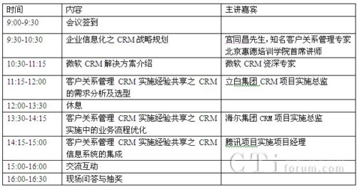 主 題:企業(yè)信息化之客戶關(guān)系管理(CRM)戰(zhàn)略規(guī)劃與發(fā)展論壇