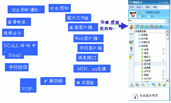UcSTAR:Unified Communication Star,是擎旗技術(shù)研發(fā)的統(tǒng)一通訊平臺(tái),它為企業(yè)提供多種通訊手段(企業(yè)即時(shí)通信、視頻、語(yǔ)音、郵件、短信、電話、MSN/QQ互通等),并可融合企業(yè)的各種應(yīng)用系統(tǒng)(OA、ERP、CRM、網(wǎng)站、電子商務(wù)系統(tǒng)等);將企業(yè)對(duì)外溝通、銷售和服務(wù)、對(duì)內(nèi)溝通和協(xié)作無(wú)縫整合;輕松實(shí)現(xiàn)無(wú)地域/時(shí)間限制的,可管理、可控制、可擴(kuò)展的,集內(nèi)外部溝通、服務(wù)和銷售一體化的統(tǒng)一工作平臺(tái)。此外,它也可被分離應(yīng)用為企業(yè)IM及實(shí)時(shí)協(xié)作系統(tǒng)、多媒體呼叫中心系統(tǒng)、專業(yè)級(jí)的IP視頻會(huì)議系統(tǒng)等。