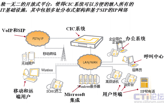 可以方便的與不同的第三方網絡設備,用戶終端等集成,預置的Microsoft插件使得CIC可以和Microsoft