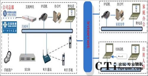 此方案適用于具有“移動辦公、頻繁出差、家庭辦公”需求的企業(yè)。系統(tǒng)要求企業(yè)內(nèi)部部署好數(shù)據(jù)網(wǎng)絡(luò),如果采用模擬終端,則企業(yè)的各個辦公點(diǎn)需要先將網(wǎng)絡(luò)線路和電話線路部署到位。如果需要應(yīng)用WIFI終端,則需要部署WIFI網(wǎng)絡(luò)。