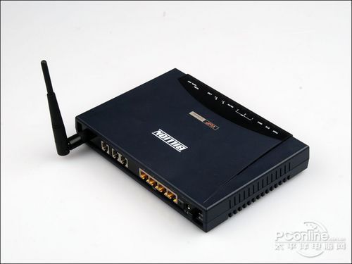 BiPAC 6404VGP外觀看上去與一臺(tái)普通的無(wú)線路由器沒(méi)多大區(qū)別,由于是面向企業(yè)級(jí)用戶(hù),所以外型設(shè)計(jì)比較沉穩(wěn)。整機(jī)深藍(lán)色,在無(wú)線路由器的正上方鮮明的標(biāo)注出它同時(shí)還是一臺(tái)VoIP語(yǔ)音網(wǎng)關(guān)。