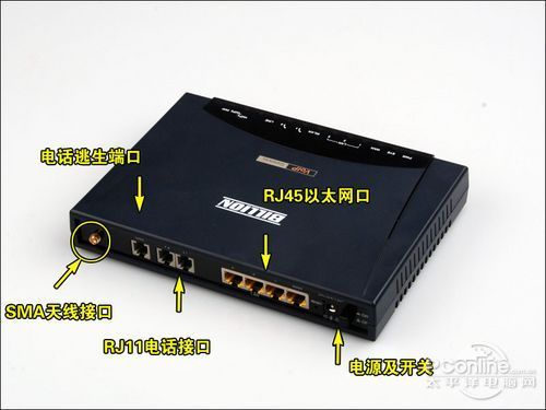 BiPAC 6404VGP后面接口板除了和普通無(wú)線路由器一樣有1個(gè)WAN接口,4個(gè)LAN接口外,還多出了三個(gè)RJ11的電話接口,這個(gè)就是用來(lái)連接傳真機(jī)或電話機(jī)的。此外,考慮到BiPAC 6404VGP的無(wú)線功能在企業(yè)中應(yīng)用需要有較大的信號(hào)覆蓋范圍,所以它還提供了一個(gè)SMA天線接口可用來(lái)連接高增益天線。