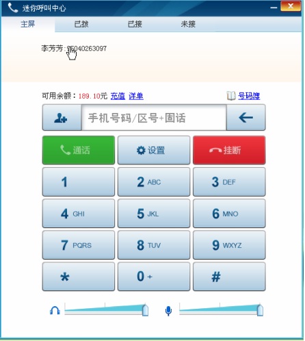 點擊迷你呼叫中心圖標(biāo),迷你呼叫中心的主屏自動彈出。