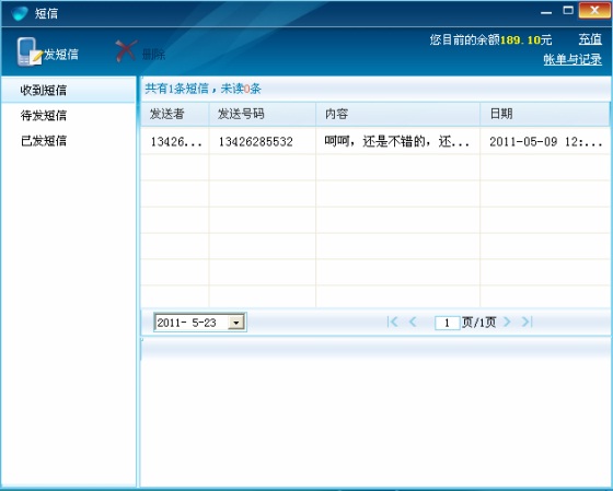 再看短信,點擊短信圖標(biāo),主屏自動彈出。收到短信、待發(fā)短信、已發(fā)短信分類明確;接收日期、發(fā)送者等信息清晰,便于查詢。