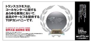 引進(jìn)國(guó)際領(lǐng)先的MO3(獲得2006 “Contact Center World Award” 最優(yōu)秀獎(jiǎng))呼出技術(shù):MO3是母公司transcosmos獨(dú)力研發(fā)的呼出服務(wù)體系。通過(guò)對(duì)數(shù)據(jù)的充分分析和挖掘,以“顧客行動(dòng)模式”為基礎(chǔ),預(yù)測(cè)“哪個(gè)顧客、哪個(gè)坐席、在哪個(gè)時(shí)間點(diǎn)、提供什么樣的服務(wù)、進(jìn)行怎樣的進(jìn)一步接觸”,以及精確計(jì)算是否收到最大投資和成效比(ROI),實(shí)行最有效的和顧客接觸的運(yùn)營(yíng)。