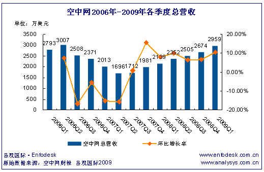 2009第1季度空中網(wǎng)總營收2960萬美元