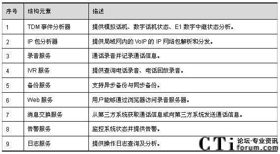 數(shù)字錄音系統(tǒng)通過(guò)模擬用戶線或者Lanside E1與交換機(jī)相連。當(dāng)錄音對(duì)象摘機(jī)通話時(shí),交換機(jī)將數(shù)字錄音系統(tǒng)和被錄音通話雙方建立會(huì)議,并通過(guò)CTI向數(shù)字錄音系統(tǒng)發(fā)出錄音啟動(dòng)命令;當(dāng)錄音對(duì)象結(jié)束通話時(shí),交換機(jī)將數(shù)字錄音系統(tǒng)和被錄音通話雙方拆除會(huì)議,并通過(guò)CTI向數(shù)字錄音系統(tǒng)發(fā)出錄音結(jié)束命令。