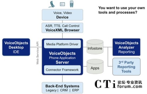 ”。這是個性化的基礎,并且給各種服務帶來了高層面的增值。作為一個基于標準的開放平臺,VoiceObjects 服務器可以利用現(xiàn)有的語音和數(shù)據(jù)處理系統(tǒng),包括現(xiàn)有的和未來的基礎設施投資。VoiceObjects