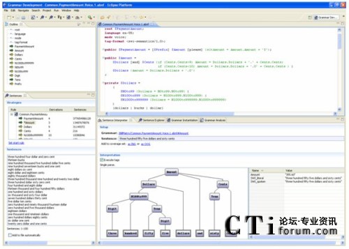 這里強(qiáng)調(diào)的Eclipse插件,除了本身作為優(yōu)秀工具,還提供了附加于Eclipse工作臺(tái)內(nèi)的順暢互操作性:你可以一邊看著對(duì)應(yīng)呼叫者輸入的對(duì)話流程,一邊檢查和完成語(yǔ)音識(shí)別語(yǔ)法;你也可以一邊構(gòu)建連接后臺(tái)的Web服務(wù)代碼,一邊通過(guò)簡(jiǎn)單地拖放來(lái)調(diào)整應(yīng)用邏輯。開發(fā)者首次擁有了對(duì)所有應(yīng)用方面的同時(shí)控制,無(wú)須在不同IDE之間進(jìn)行切換,或者在選擇單一環(huán)境時(shí)在特性上的折衷。