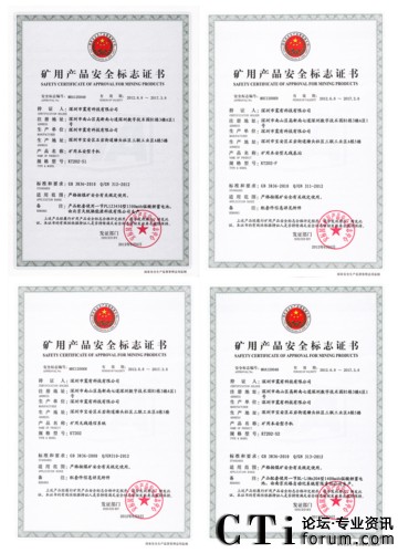 CTI論壇(ctiforum)6月15日消息(記者 楊佳林):震有科技順利通過安標(biāo)國家礦用產(chǎn)品安全標(biāo)志中心頒發(fā)礦用無線通信系統(tǒng)、礦用本安型無線基站、礦用本安型手機S1、礦用本安型手機S2的四項礦用產(chǎn)品安全標(biāo)志證書,這標(biāo)志著震有科技KT202礦用融合通信系統(tǒng)獲得煤礦安全領(lǐng)域的通行證,為公司大力拓展煤礦能源市場奠定了堅實有利的基礎(chǔ)。