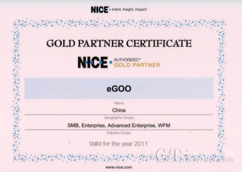 CTI論壇(ctiforum)4月19日?qǐng)?bào)道(記者 潘婷婷):日前,易谷獲得由NICE頒發(fā)的“金牌合作伙伴”證書(shū)。